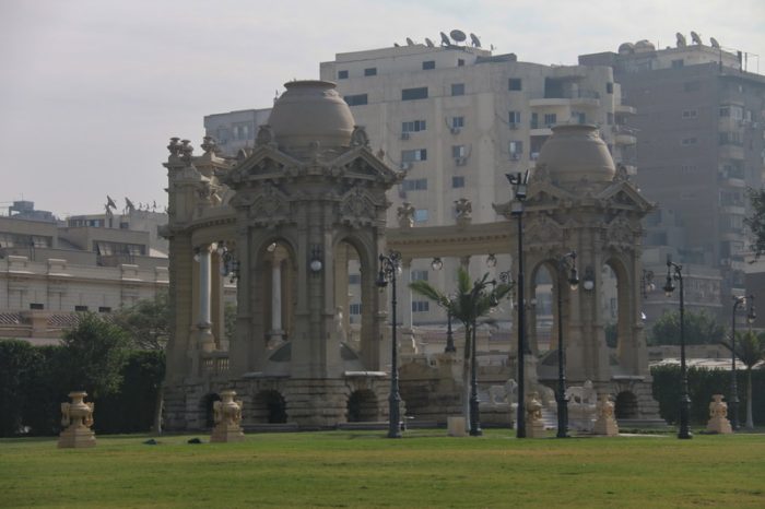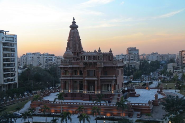 Утром из окна отеля неплохой вид на дворец барона Эмпейна. Это частная усадьба бельгийского воротилы в Каире, разрушенная, заброшенная и заново всё ещё восстанавливаемая.