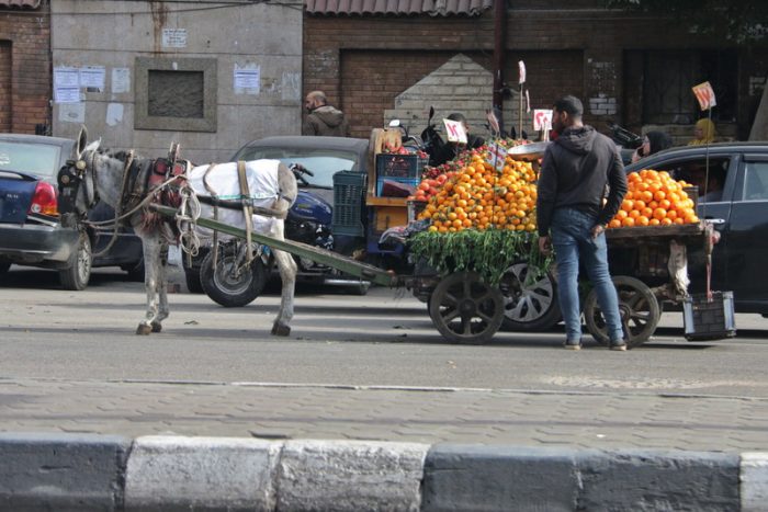 Каир — город контрастов. И это не игра слов. Встретить гружёного ослика или лошадку на автостраде проще простого. Сейчас сезон цитрусовых. Апельсины в переводе на российские рубли — 30 рублей за 1 кг.