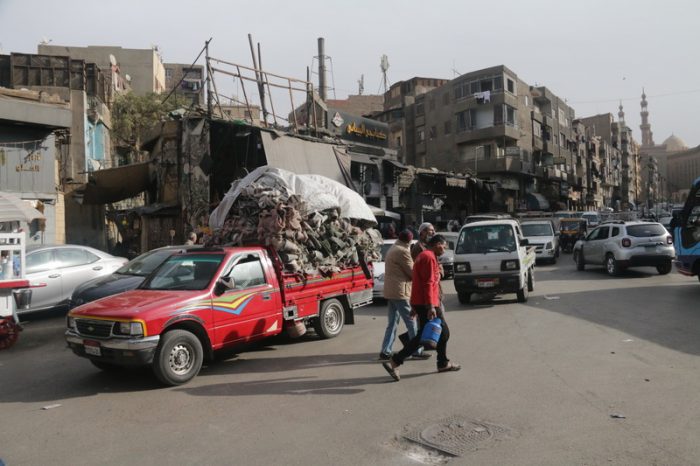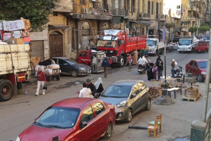 Улицы Каира иногда делятся по роду продаваемых товаров. Бывает целая улица мебели, автомобильных товаров, целый квартал оптик, обуви, электрических ламп. Всё это вывалено на улицу прямо на землю и перегораживает проезд, в который может проехать только одна машина. Поэтому возникает дикая вакханалия, когда встречаются две машины и не могут разъехаться.