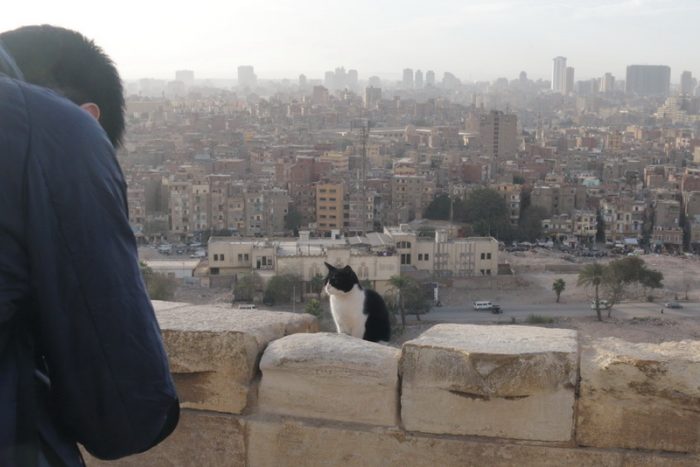 Цитадель — это хорошая обзорная точка. Мы видим на горизонте в пустыни пирамиды в Гизе. Но это завтра.