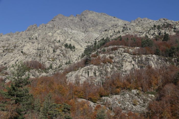 Водопады, осенний лес, прозрачное небо и впереди гора Мон Дор. В солнечном свете она иногда кажется, действительно, золотой. Нас хватило на прогулку в 10 км, из которых километра 4 были довольно связко- и коленодробительными. Все горные приюты закрыты, т.к. сезон официально завершился, но места манящие, поэтому туристы с палками попадаются и в это время. Хочется вернуться сюда и прошагать весь путь от Кальви до Конки, поставить палатку под вековой сосной или скатиться в каньон по струям водопада.