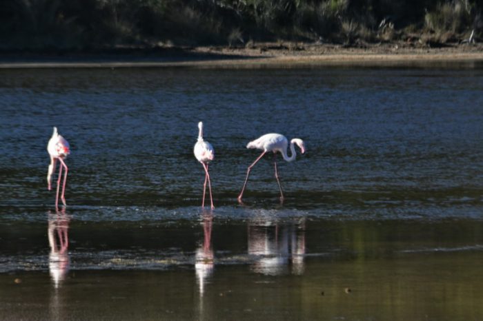 Окрестности города славились в прошлом своими болотами, малярийными комарами и фламинго. К счастью, до нашего приезда комаров успели победить, а вот розоватые птицы ещё остались. Это белый фламинго с розовыми перьями на кончиках.