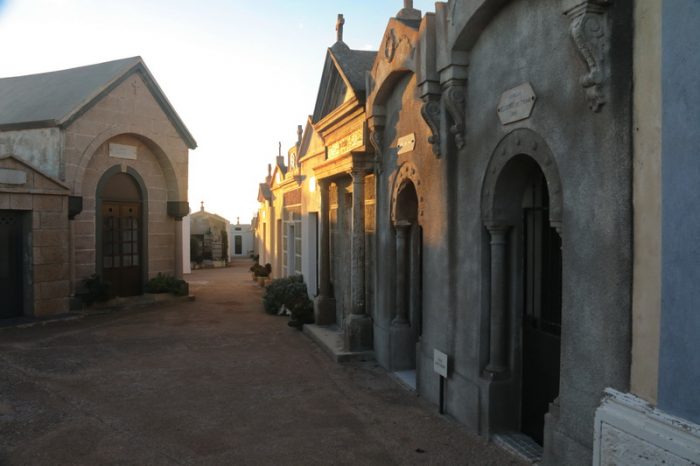 Солнце уже садится, ноябрьские дни ужасно короткие. Мы доходим до местного кладбища. Оно, действительно, примечательно. Склепы-дома, проходы-улицы, площади с цветами. Словно ты очутился в безлюдном городе.
