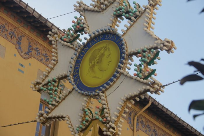 В городе всё и вся про Наполеона. И сувениры, и музеи, и названия отелей, корзины, картины, картонки… А вот торта не наблюдается.